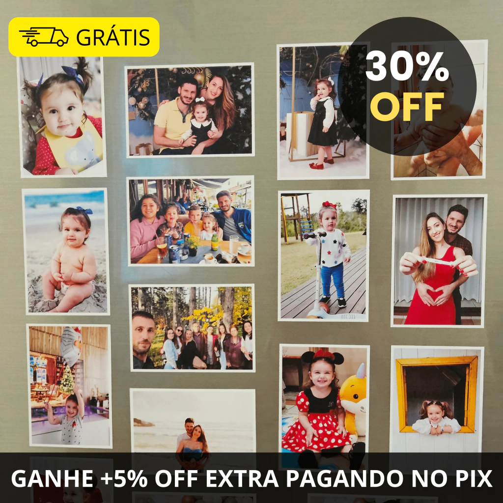 Compre Agora e Revele em Até 60 Dias! Sim, você tem total flexibilidade para escolher fotos diferentes ou até optar por cópias iguais. Revelação profissional com verso 100% imantado, ideal para eternizar suas memórias com elegância e qualidade.